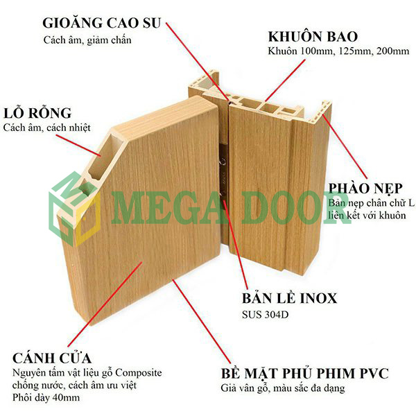 Mẫu cửa gỗ nhựa sở hữu một kết cấu khá đặc thù: