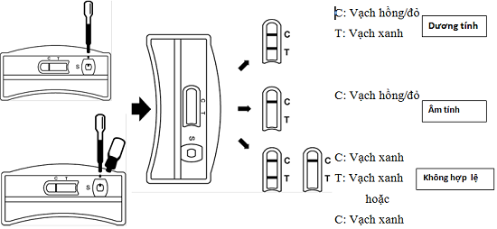 + Vạch chứng “C” không không đổi màu và có thêm vạch xanh ở vùng thử “T”, xét nghiệm lại sau khi li tâm.