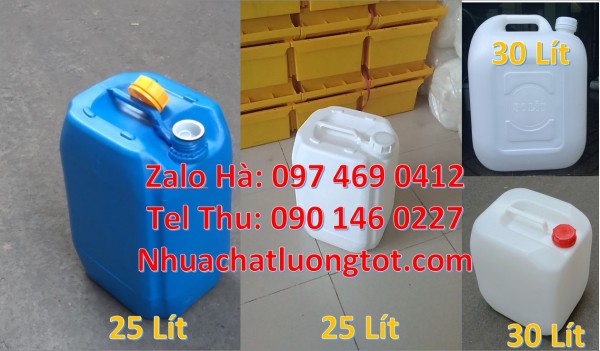 can vuông 30 lít hdpe đựng hóa chất, can nhựa dày 25 lít đựng axit, can 20 lít đựng thuốc bảo vệ thực vật, can 20l tròn, can 25l xanh, Can 4l vòi nhấn,