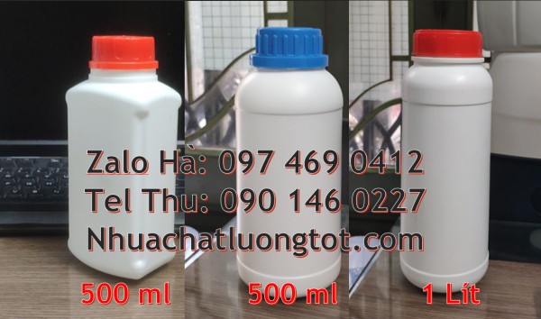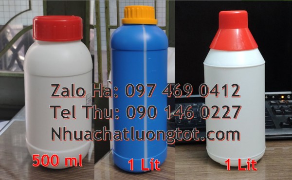 Chai 250 ml đựng axit. Chai nhựa 500 ml đựng nông dược, Chai 100ml màu trong, Chai 50ml đựng giấm, chai xịt khử trùng 1l, Chai 500ml miệng nhỏ,