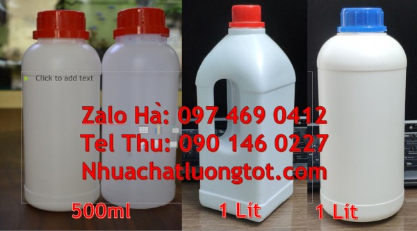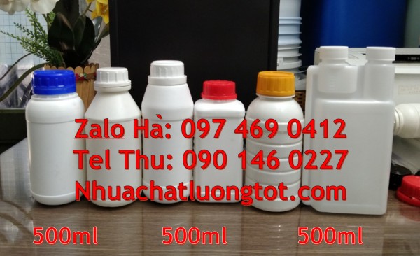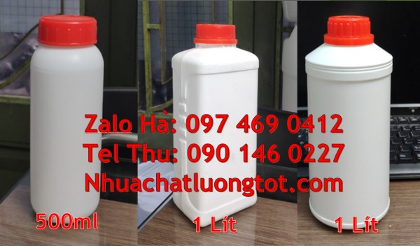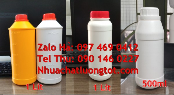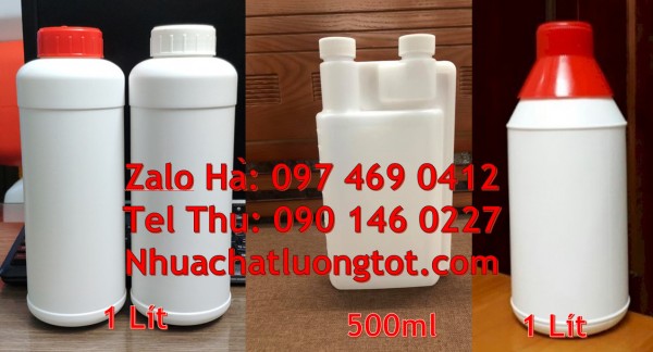 Cung cấp sỉ lẻ số lượng lớn Chai nhựa 30 ml, Chai nhựa 50 ml, Chai nhựa 100 ml đựng nông dược. Địa chỉ bán chai 1l hdpe, Chai 1 lít đựng thuốc thủy sản. Chai nhựa 200ml 1000ml đựng axit, chai nhựa đựng hóa chất, thuốc bảo vệ thực vật, dầu nhớt, phụ gia thực phẩm, dược phẩm, hóa mỹ phẩm … tại tp hcm, quận 10, long an, bình dương … Thân Chai nhựa 500 ml. Chai nhựa 1 lít dày dặn, chắc chắn có độ bền cao, có độ đàn hồi, chịu được va đập tốt, tuyệt đối an toàn để đựng và lưu trữ hàng hóa.