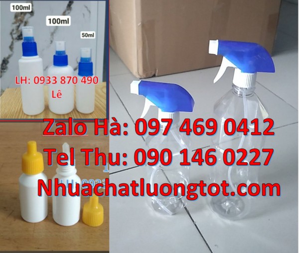 Chai có vòi ấn, phun sương. Chai nhỏ mắt. Chai nhựa 30 ml. Chai nhựa 50 ml. Chai nhựa 100 ml. Chai nhựa 250 ml. Chai nhựa 500 ml. Chai nhựa 1 lít