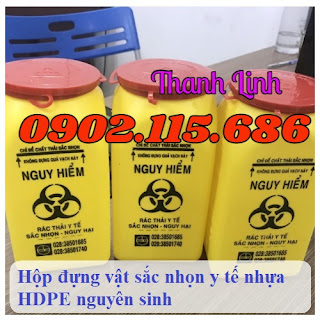 Công dụng: Dùng để chứa các loại rác thải y tế, sắc nhọn nguy hại, kim tiêm bẩn, bao bệnh phẩm, lọ bệnh phẩm