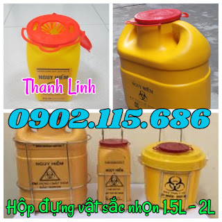 đựng vật sắc nhọn, hộp đựng kim tiêm y tế, hộp đựng vật sắc nhọn 1.5 lít, hộp đựng vật sắc nhọn 6.8 lít, hộp đựng rác
