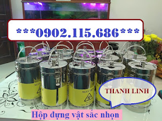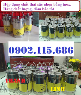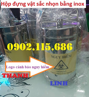 Hộp đựng vật sắc nhọn inox, được trang bị logo “đựng chất