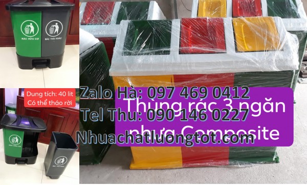 Nơi bán Thùng rác 3 ngăn composite, Thùng rác 2 ngăn nắp lật, Thùng rác 2 ngăn hdpe, Thùng rác 2 ngăn bập bênh, Thùng rác đạp chân 20 lít, Thùng rác 2 ngăn composite tại tp hcm.