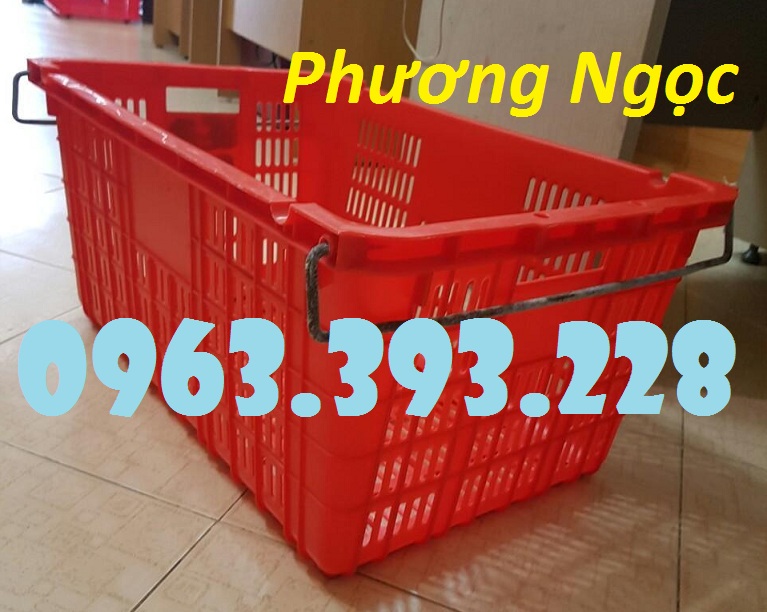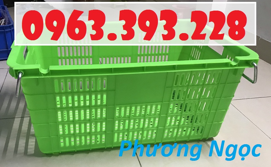 Sọt nhựa quai sắt có quai sắt ở 2 bên tay cầm giúp cho việc cầm nắm di chuyển hàng hóa được dễ dàng cho người dùng. Sản phẩm thường được sử dụng hàng hóa, may mặc, trái cây.