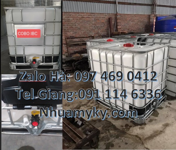 Tank IBC 1000 lít, Thùng IBC 1000l mới, bồn 1000 lít cũ, tank nhựa 1000l đựng hóa chất, thùng nhựa 1000L đựng axit, bồn đựng dầu nhớt 1000L,