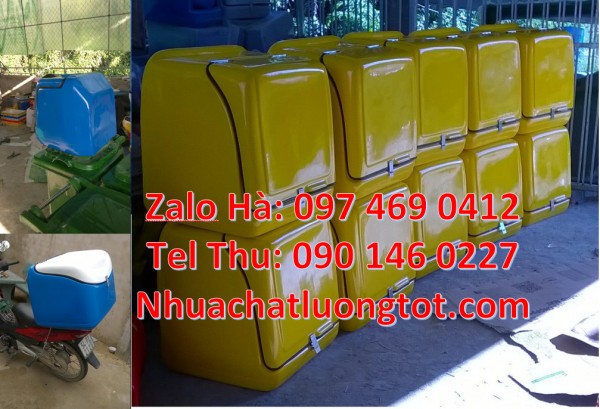 Bán Thùng giao đồ ăn văn phòng, thùng tiếp thị, thùng giữ nhiệt giá rẻ tại tp hcm. Sản phẩm sx từ nhựa composite nên rất bền, chống cháy tốt ... Nắp thấp, thùng hướng dọc xe, bản lề inox, khóa inox, bạc xốp giữ nhiệt, giữ lạnh tốt ... Sản phẩm có độ an toàn cao, giá thành hợp lý, hoàn toàn yên tâm giao hàng dưới trời mưa nắng.