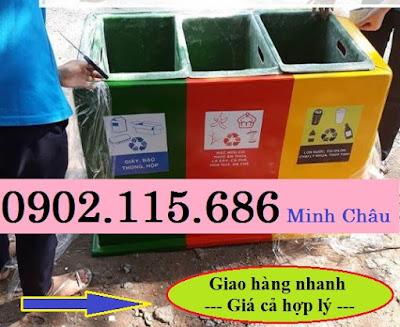 Thùng phân loại rác 3 ngăn, thùng rác 3 ngăn nhựa composite, thùng rác