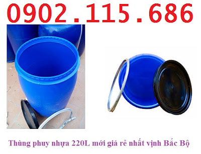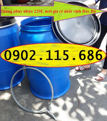 nhựa 220l mới, thùng phuy nhựa 200l nắp mở, thùng phuy nhựa 200l 4 đai, thùng