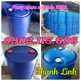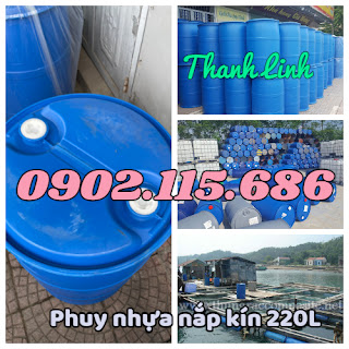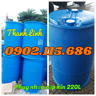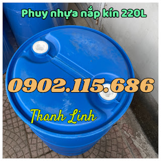 Thùng phuy nhựa 220L nắp kín, thùng phuy nhựa 2 nắp nhỏ