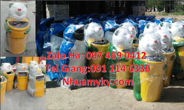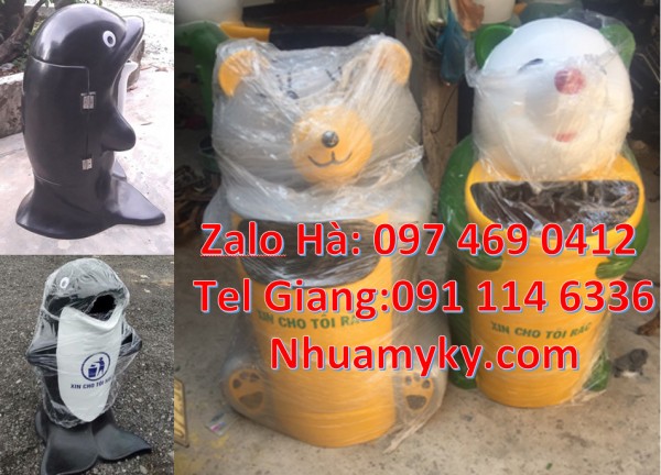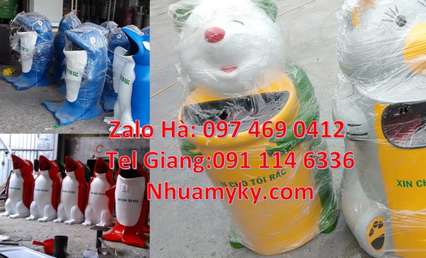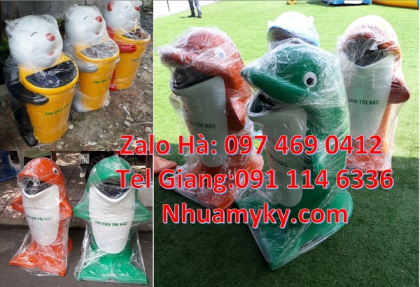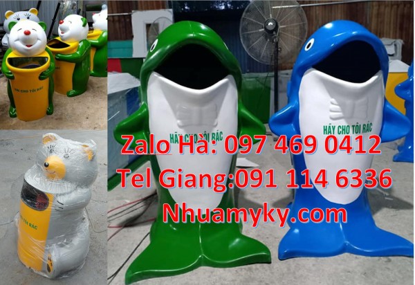 - Đa dạng mẫu mã, kiểu dang: Thùng rác chim cánh cụt, Thùng rác hình con voi, Thùng rác cá heo, Thùng rác cá chép, Thùng rác chuột mickey, Thùng rác gấu trúc