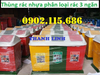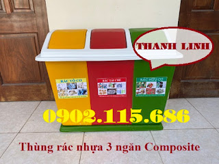 rác nhựa phân loại rác 3 ngăn nhựa Composite