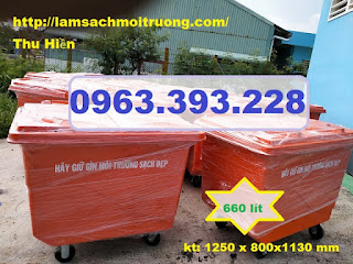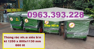 gom rác nhựa 660L loại thùng rác có dung tích rất lớn có bánh xe, sử dụng phù hợp
