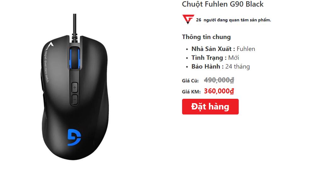 Đồng thời nếu bạn đang muốn trải nghiệm trực tiếp các dòng chuột khác không riêng gì Fuhlen G90 có thể đến ngay các showroom của GEARVN trên toàn quốc để tự tay chạm và trải nghiệm. Hiện sản phẩm đang được bán với giá khuyến mãi giảm giá đến 27%. Link mình sẽ để bên dưới tiện bạn tham khảo một trong những dòng chuột chơi game giá rẻ chất lượng.