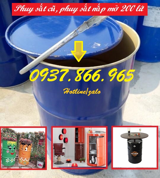 sắt mới & cũ, thùng phuy 200l , phuy sắt nắp mở