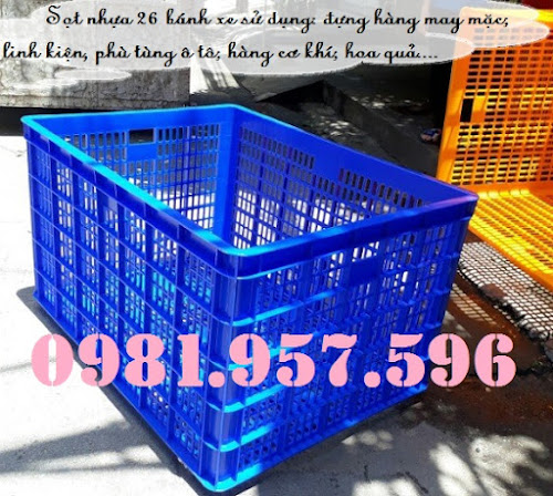 -         Sọt nhựa thiết kế 13 bánh xe kép ( 26 bánh xe) di chuyển hàng hóa có khả năng chịu tải trọng lớn ( 300kg -> 600kg/cái)