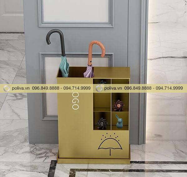 Bên cạnh công dụng chính là để ô dù. Loại kệ này còn được dùng để đặt thêm chậu cây, bình hoa nhỏ hoặc dá logo khách sạn quảng bá hình ảnh hiệu quả. Đồng thời giúp không gian khách sạn thêm đẹp hơn.
