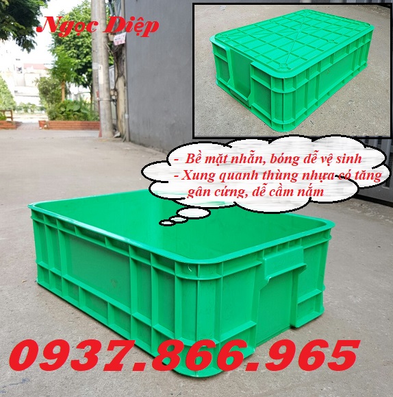 -         Thùng nhựa với sóng nhựa bít và có nắp đậy giúp bảo quản sản phẩm bên trong thùng khỏi bụi bẩn hay nước