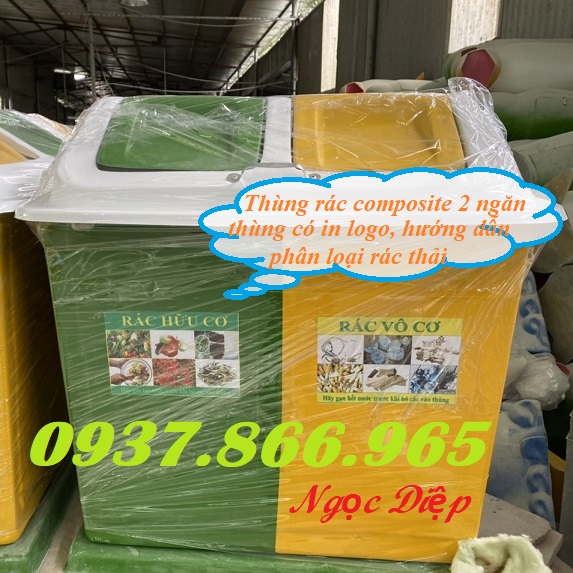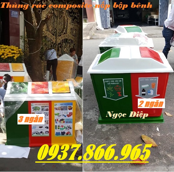 rác composite 2 ngăn, thùng composite 3 ngăn, thùng phân loại rác, thùng rác