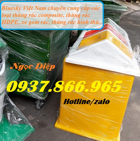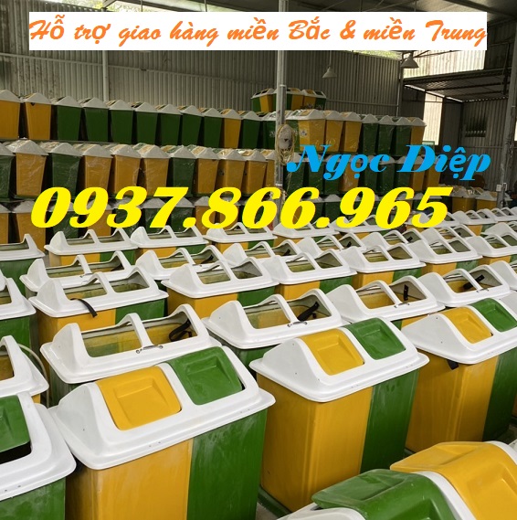 thùng rác 2 ngăn, thùng rác 3 ngăn, thùng rác composite, thùng rác nắp bập bênh, thùng phân