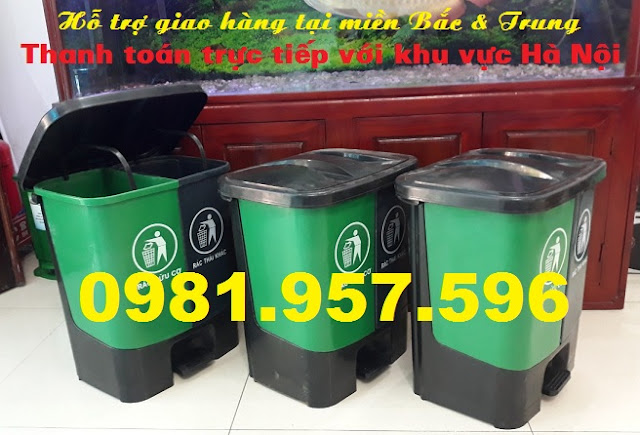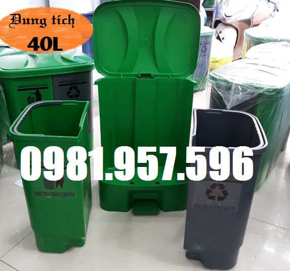 Thùng rác 2 ngăn 40L, thùng rác 40l có chân đạp, thùng rác nhựa HDPE