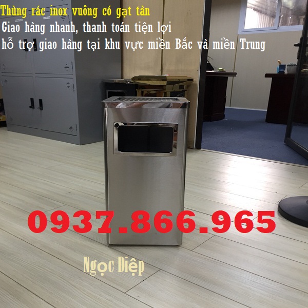 rác inox, thùng rác inox có gạt tàn, thùng rác vuông, cây gạt tàn thuốc lá