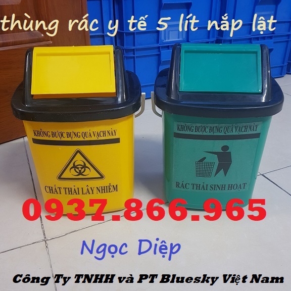+ Thùng rác y tế nắp lật 5 lít màu xanh đựng rác thải sinh hoạt, rác
