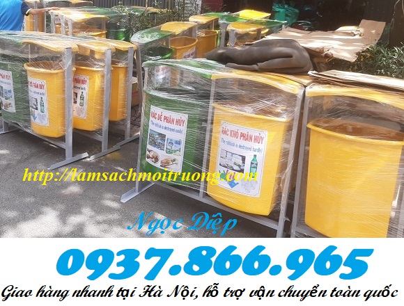 thùng rác giá rẻ, thùng rác nắp cao, thùng phân loại rác 2 ngăn