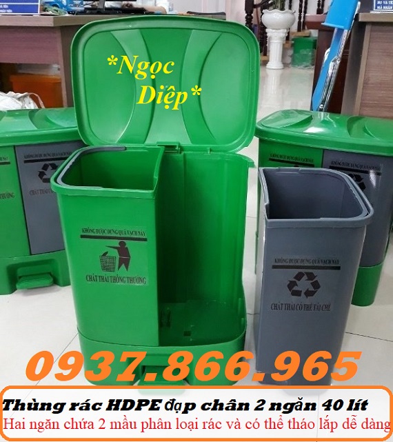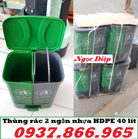 nhựa HDPE, thùng rác 2 ngăn,