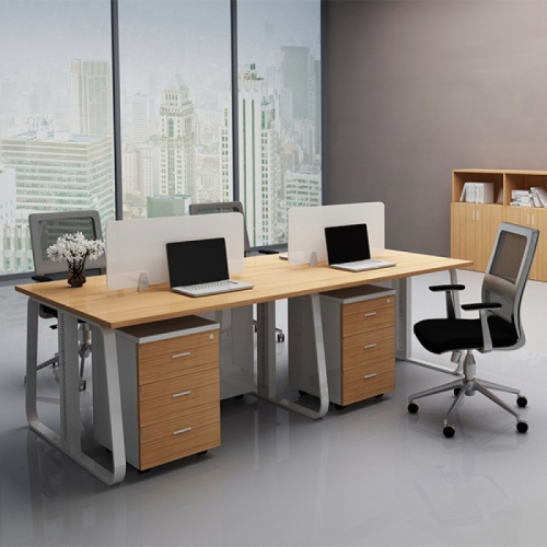 Cấu trúc bàn với 4 vị trí ngồi, phân chia không gian làm việc bằng vách ngăn kính, vải, gỗ,… cao cấp, tạo ra không gian làm việc độc lập, riêng tư, thoải mái cho nhân viên. Chân bàn tĩnh 3 khung trụ cách điệu hình vòm cung hài hòa. Nên trang bị sử dụng cùng bàn là hộc di động với ngăn lưu trữ tiện dụng, ngăn nắp, gọn gàng.