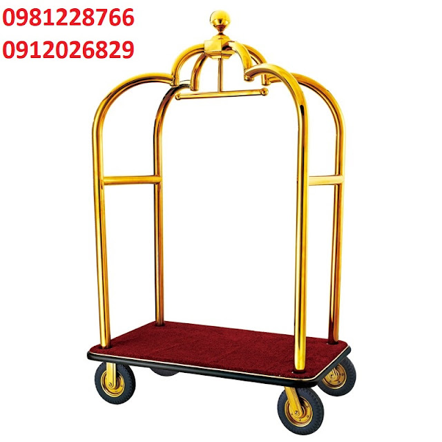 Xe đẩy khách sạn (Luggage trolley) được thiết kế sang trọng, chuyên nghiệp. Khung xe đẩy được sản xuất từ inox được mài bóng. Cấu tạo xe đẩy độc đáo, phần chóp xe được thiết kế cách điệu và tinh tế, bên dưới đỉnh xe đẩy là thanh treo quần áo chịu lực tốt. Do được làm từ inox cao cấp nên xe đẩy hành lý có nhiều ưu điểm như: tính chống ăn mòn cao, khả năng chịu lực, chịu nhiệt tốt, khả năng tạo hình đẹp