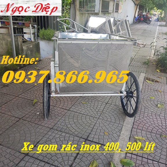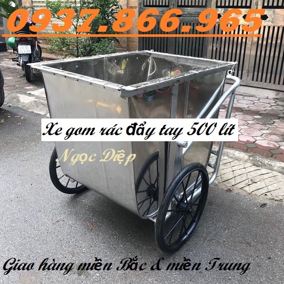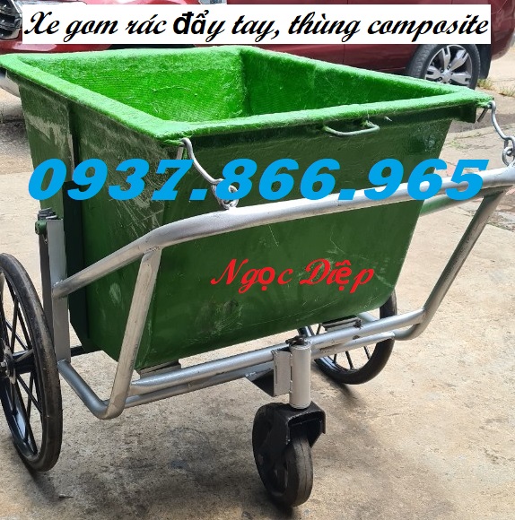 rác dẩy tay bằng tôn, xe đẩy rác composite, xe
