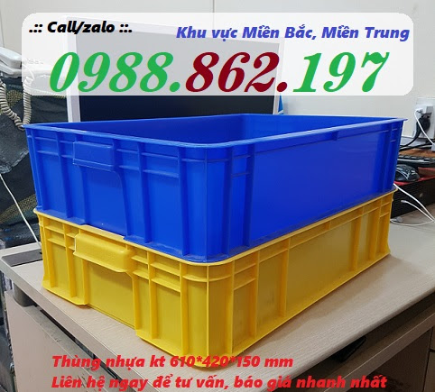 Thùng nhựa công nghiệp với thiết kế: tay cầm chắc chắn ở hai đầu tiện cho việc bê/vác hàng hóa, mặt đáy có đường kẻ ô chống trơn trượt, thân thùng có các gân sóng tăng cứng giúp tăng độ chịu lực, chịu tải.