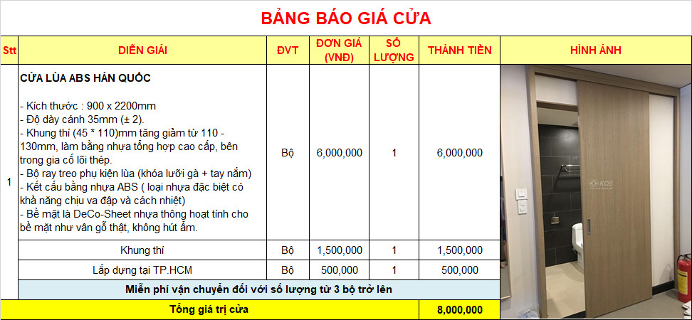 Giá cửa lùa ABS Hàn Quốc tại TP.HCM