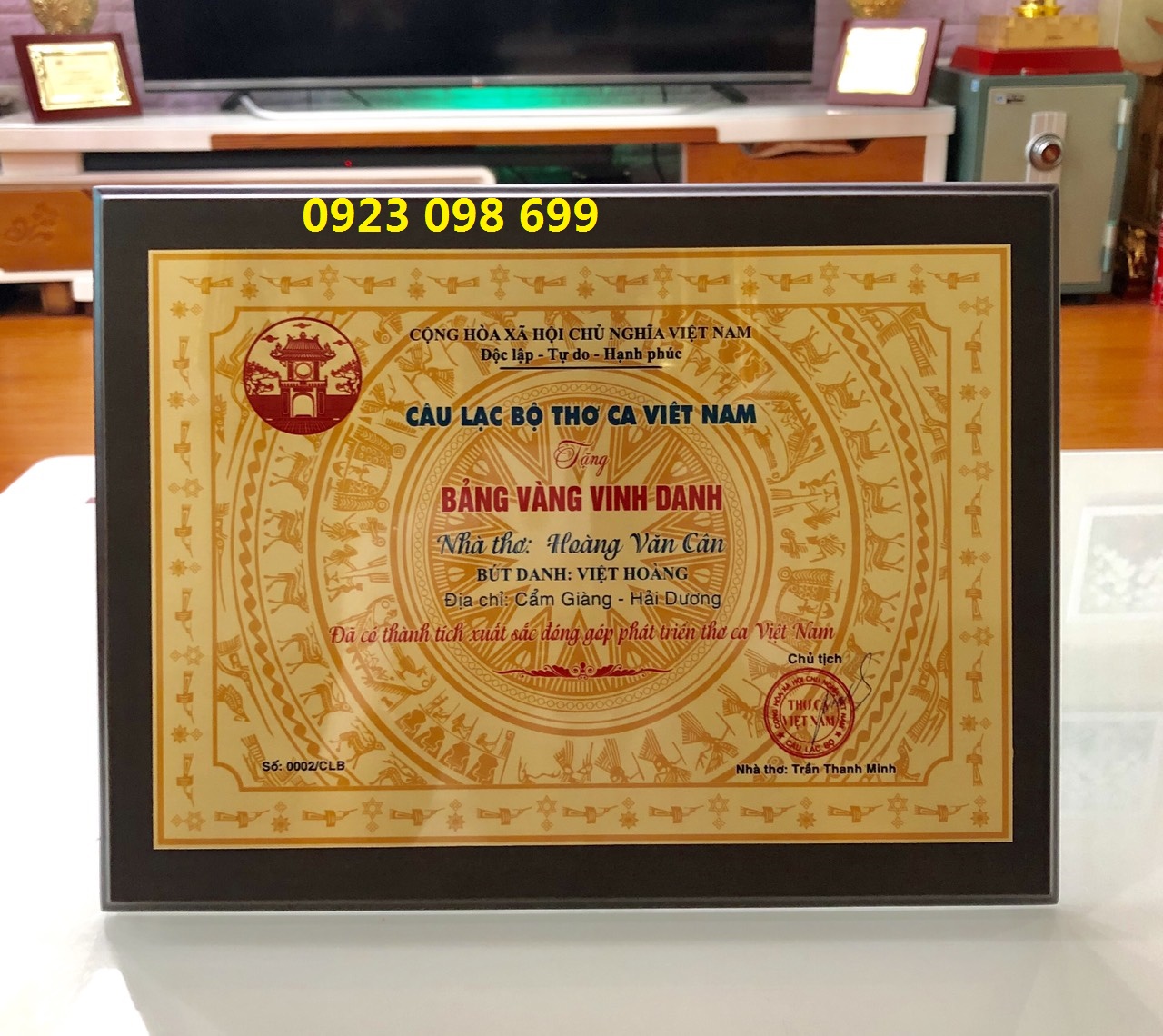 Nhận làm bảng vinh danh, cung cấp chứng chỉ đào tạo nghề, sản xuất bằng khen gỗ đồng, bảng vàng vinh danh, chứng nhận đại lý, làm chứng nhận nhà phân phối, bằng khen thẩm mỹ, chứng chỉ bàn tay vàng, băng khen sắc đẹp...