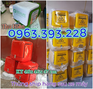 chở hàng sau xe máy, thùng nhựa ship hàng