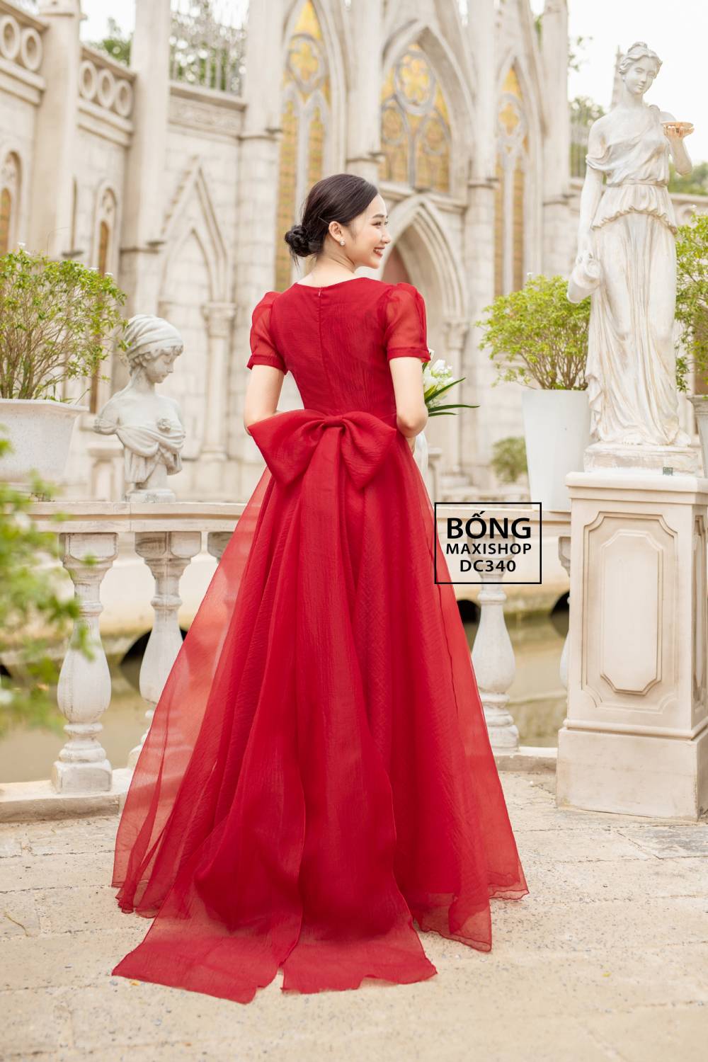 Mua ngay: Váy cưới đỏ voan xốp cổ V kèm Nơ DC340D