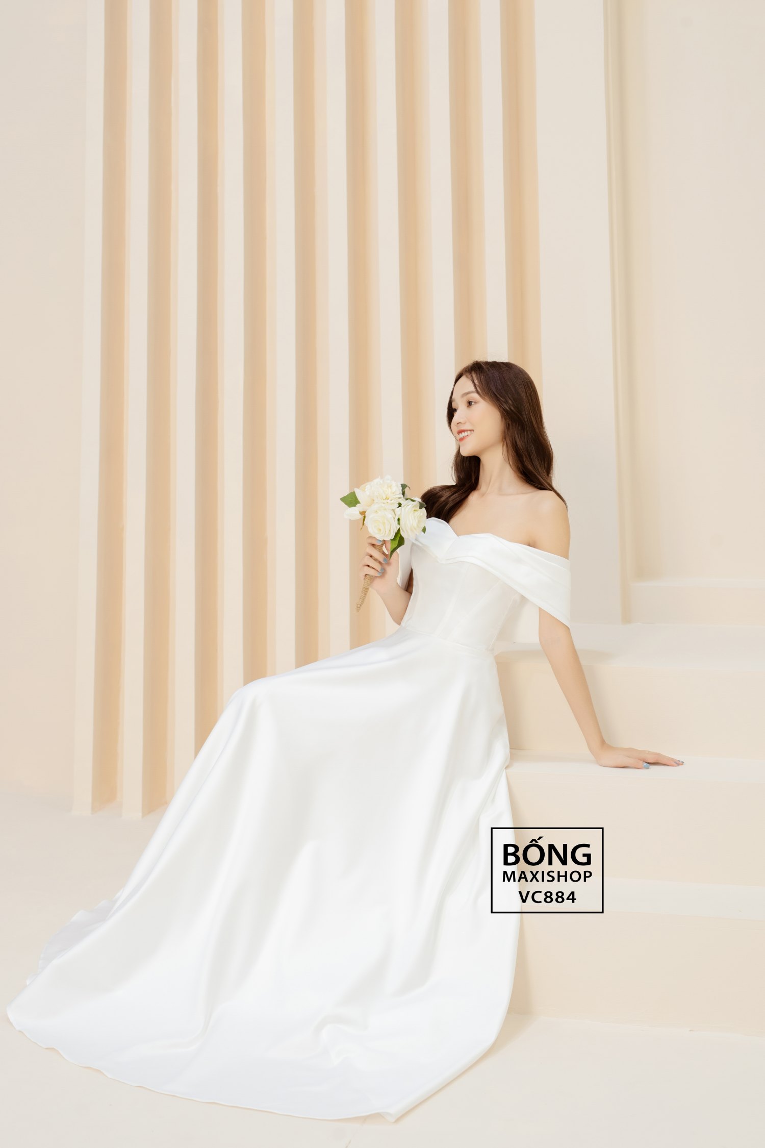 Váy cưới cho bà bầu trễ vai VC884