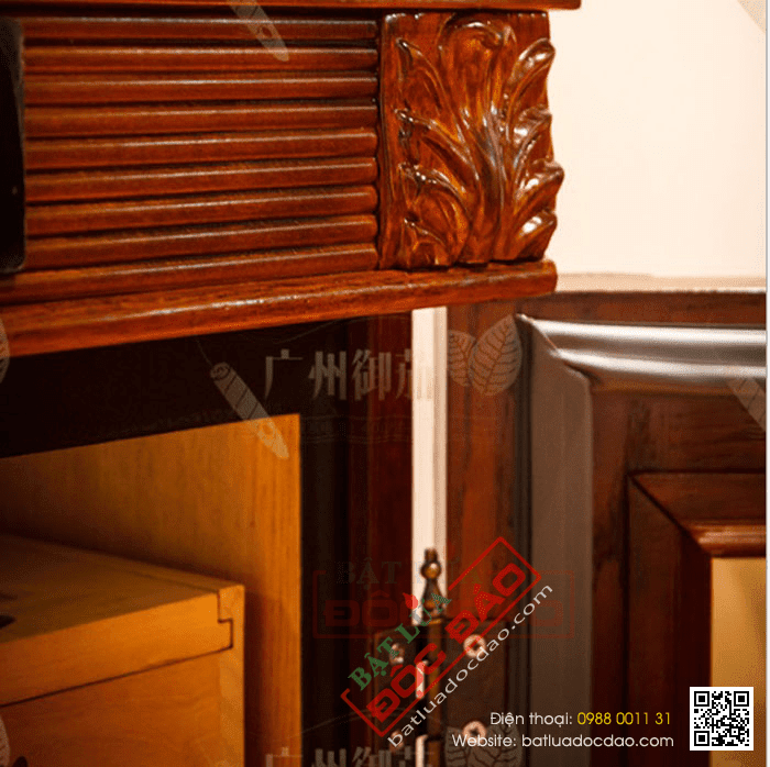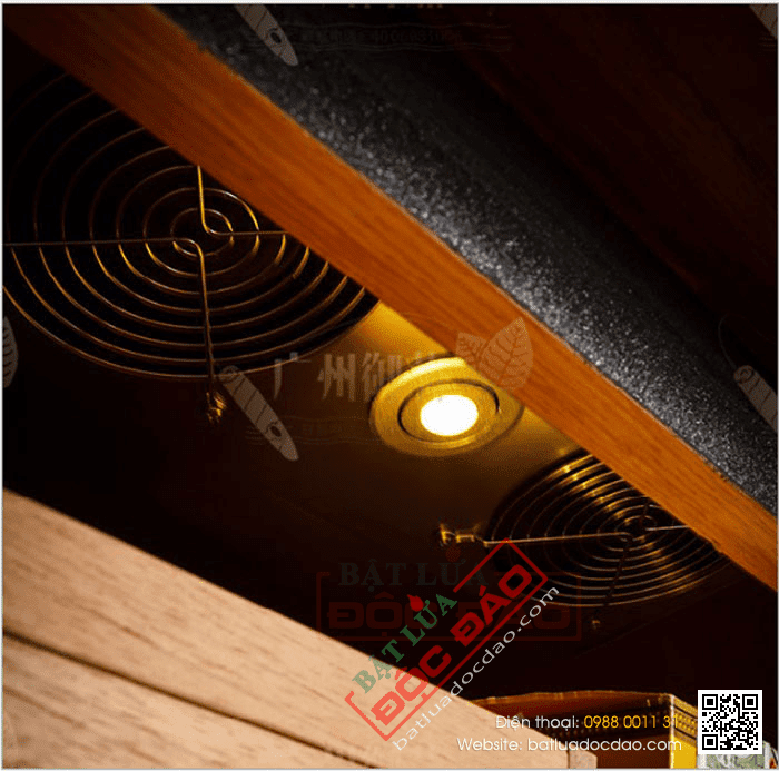 - Chất liệu: Tủ gỗ sồi, cửa kính, khay gỗ tuyết tùng cao cấp