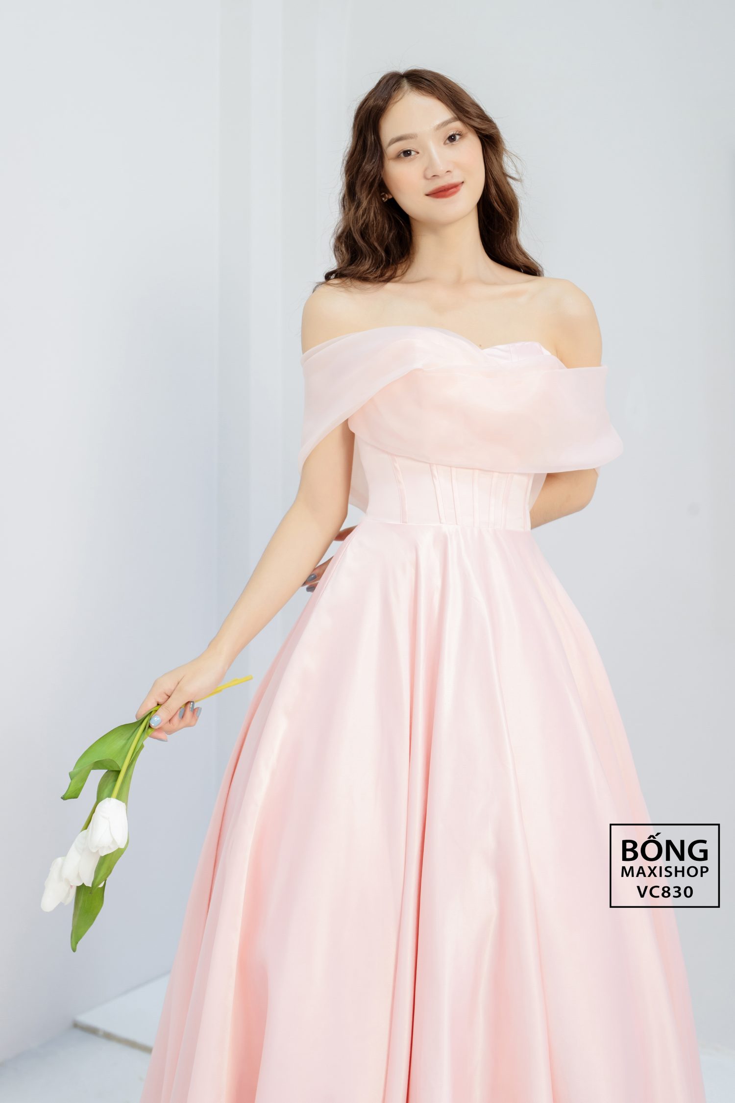 Mua ngay: Váy cưới xốp trễ vai hồng ruốc DC776XR