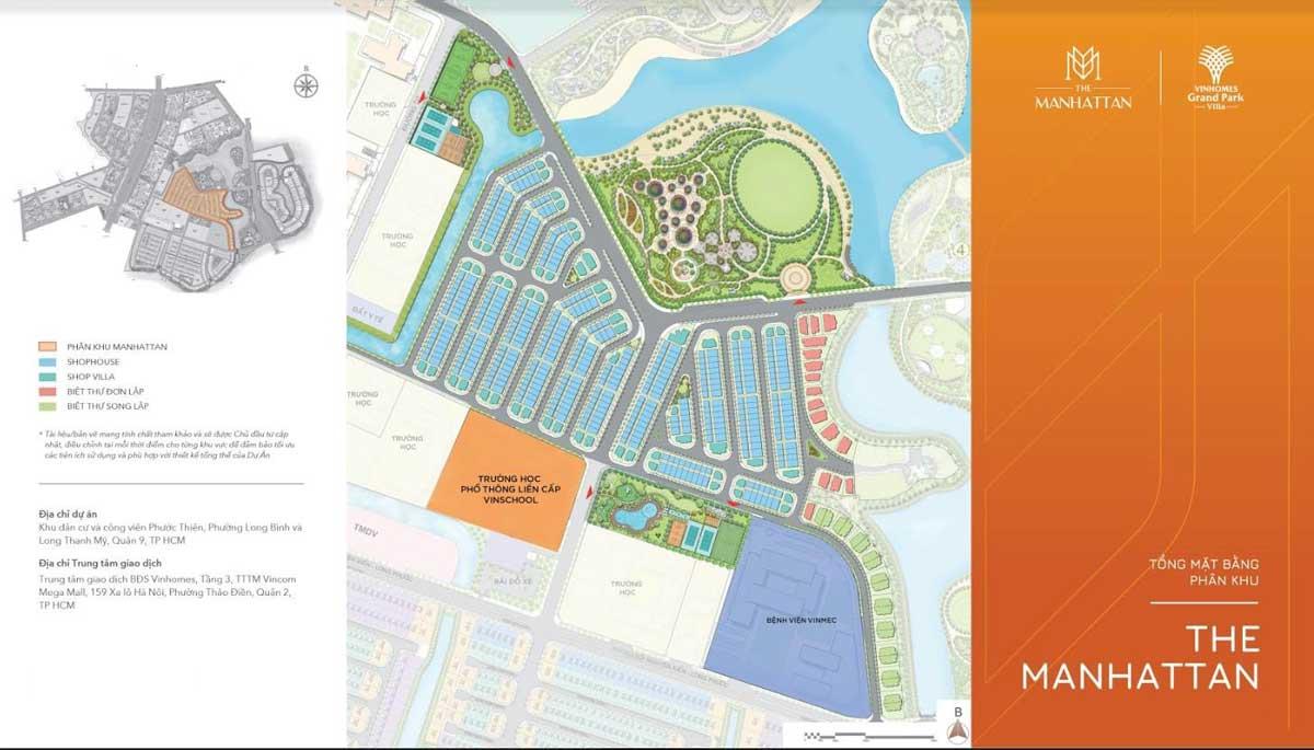 Theo quy hoạch, The Manhattan là phân khu thấp tầng cao cấp tại dự án. Đặc biệt, The Manhattan là phân khu duy nhất ôm trọn được đại công viên 36ha Vinhomes Grand Park. Chính với địa thế vô cùng đặc biệt như vậy mà đã khiến The Manhattan trở thành một điểm sáng đầu tư tại các sàn giao dịch bất động sản TPHCM. Cụ thể, đến với The Manhattan bạn có thể lựa chọn đầu tư cho thuê, kinh doanh sinh lời hoặc mua để ở lâu dài.